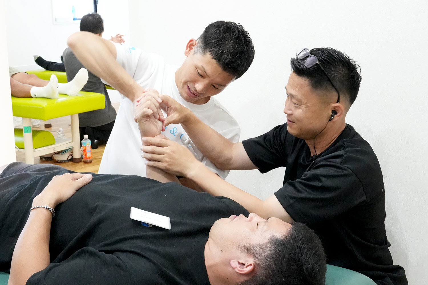 具体的にはカラダの歪みには手技療法による歪みの調整を、良くないカラダの動きには運動療法で正しいカラダの使い方を学習させており、手技療法・運動療法ともに自動介助という技術を用いた施術を行っています。